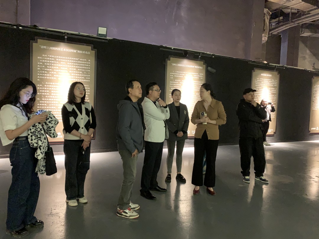 衛(wèi)總引導(dǎo)交流團參觀了《清明上河圖》AI全息動態(tài)長卷,領(lǐng)略科技與文化藝術(shù)疊加的風(fēng)采;游覽實景大明古集市、非遺紋樣DIY定制等活動,讓大家一站看遍500年前的蘇州城繁榮盛景,科技加持,再現(xiàn)《清明上河圖》。