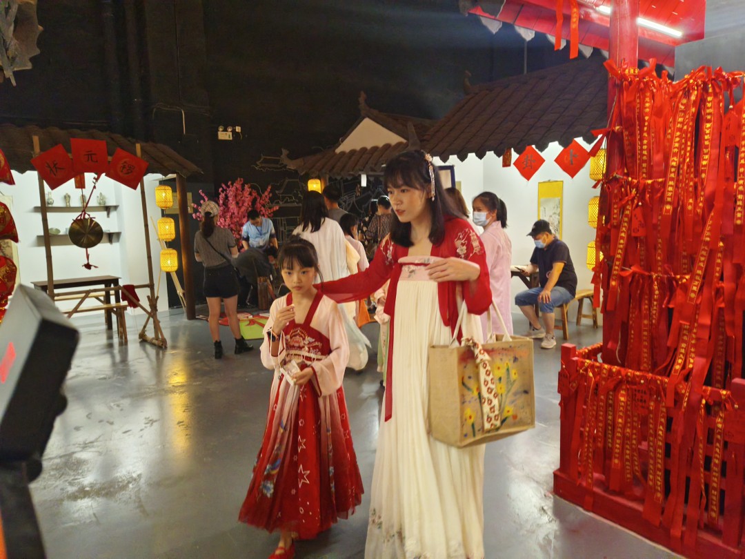 隨后,游客們換上了漢服,游覽了古集市。這里有許多古色古香的建筑和道具,讓人們仿佛穿越回了古代。他們?cè)谶@里體驗(yàn)了傳統(tǒng)游戲,感受到了中國(guó)傳統(tǒng)文化的獨(dú)特魅力。