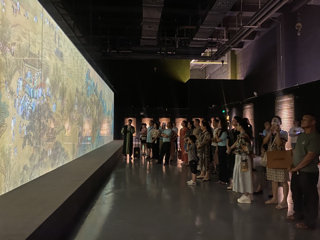 參觀團(tuán)一行先后參觀了ACMALL科技藝術(shù)空間的各個(gè)展廳。在“得意江山在眼中”展廳中,長(zhǎng)25.8米高3.3米的清明上河圖全息動(dòng)態(tài)長(zhǎng)卷讓參觀團(tuán)大為震撼,紛紛表示從未見(jiàn)過(guò)如此精美之展品。
