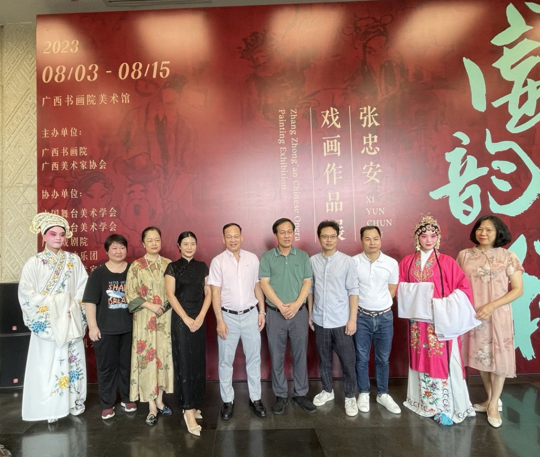 8月3日,“戲韻春秋——張忠安戲畫作品展”在廣西書畫院美術(shù)館舉行,本次展覽,展出張忠安先生近年來創(chuàng)作的戲畫作品130余件,祖龍集團總經(jīng)理張祖龍先生、副總經(jīng)理衛(wèi)燕女士、聚象科技總經(jīng)理梁曉靜女士、副總經(jīng)理韋偉先生受邀參加開幕儀式。