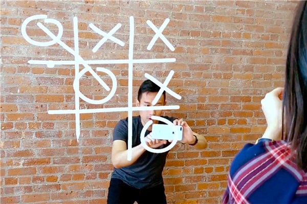 谷歌給雙方帶來的這款應用叫做 Just a Line(畫線吧),iOS端可以在App Store免費下載,它本身的功能和其他AR趣味繪圖應用很像,你可以通過手機屏幕看到自己在真實空間中用線條描繪的種種圖案,但這里還藏有一個巧妙的跨平臺游戲,你可以通過不同設(shè)備,包括iOS和Android設(shè)備之間“合作”完成繪畫,就像谷歌此前展示過的那樣——不同設(shè)備的用戶兩兩玩起了AR五子棋,你可以實時地看到伙伴的作品,你的伙伴也一樣。