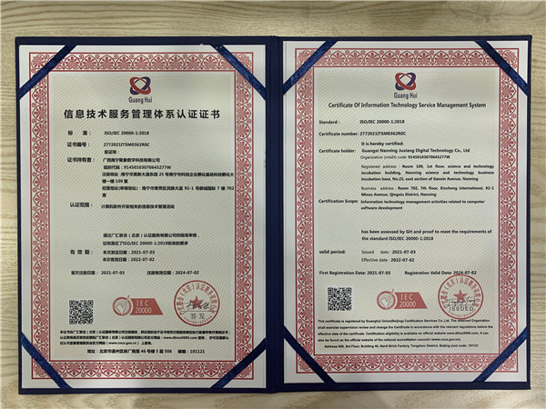 熱烈祝賀我公司順利通過IS09001質(zhì)量管理體系認(rèn)證及ISO20000信息技術(shù)服務(wù)管理體系認(rèn)證!