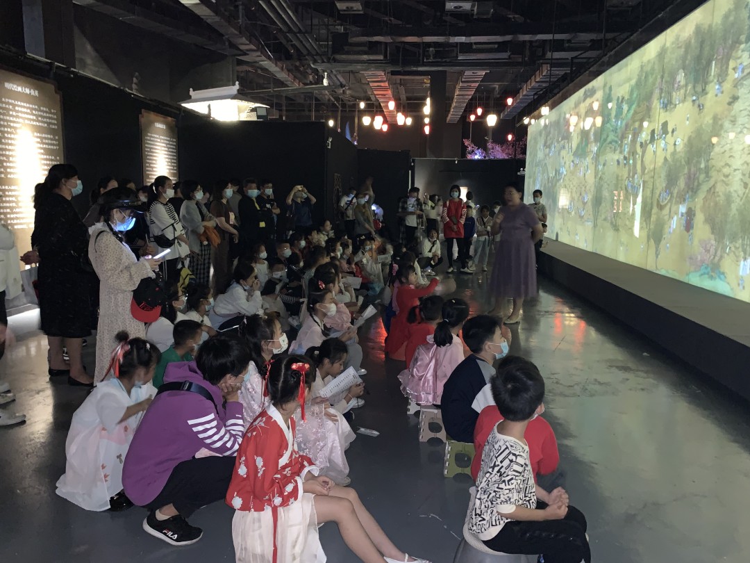 前來參加主題比賽活動(dòng)的小朋友們來到清明上河圖科技藝術(shù)沉浸特展后,在特展講解員的解說下其樂融融的對(duì)特展26.8米的全息動(dòng)態(tài)長(zhǎng)卷進(jìn)行了觀賞游覽,大家在聆聽結(jié)束之余紛紛拿出手機(jī)拍下了令人驚艷的“活起來”的《清明上河圖》。