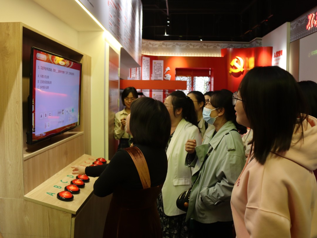 大家參觀了ACMALL科技藝術(shù)中心剛剛上線的“在烽火中建黨”科技智慧展廳,在講解員的帶領(lǐng)下,大家一起重溫入黨誓詞、了解中國共產(chǎn)黨在廣西的歷史大事件、共唱紅歌,同時體驗了運用了5G、體感互動、大數(shù)據(jù)、元宇宙技術(shù)的“烽火中的家書”、“紅色光影圖書”、“黨史搶答賽”等多項新型黨建活動。
